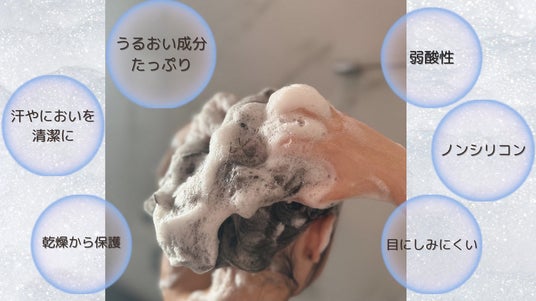汗やにおいを清潔にしながら頭皮にたっぷりとうるおいを与えます。