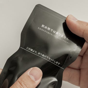 4. リフィルの折り曲げた部分が下になるようにボトルに入れる