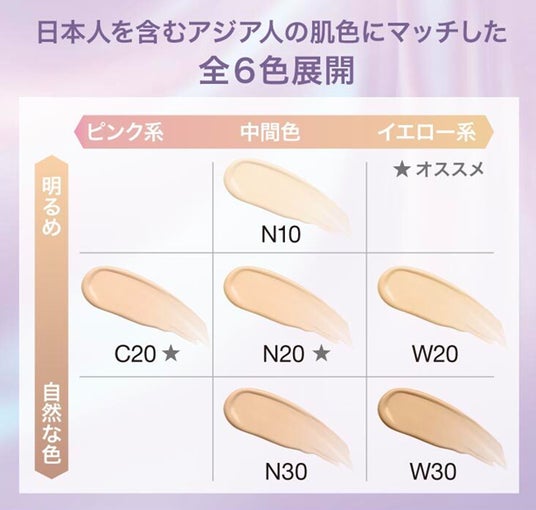 ・日本人を含むアジア人の肌色にもマッチした全6色展開