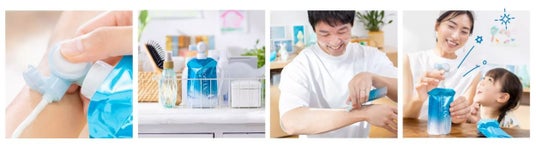 また、本商品のチューブタイプに加えて、誰でも使いやすいパウチタイプの日やけ止め『ビオレUV アクアリッチ ウォータリーエッセンス フレッシュパウチ』も全国発売*3 します。軽い力でボタンを押すだけで使えるので、老若男女問わず誰でも簡単に日やけ止めを肌に吐出することができます。無駄なく使いきれるだけではなく、最後まで外気に触れず清潔に使えます。また、チューブタイプの約1.7倍*5 の大容量であるパウチタイプ本体に加えて、ポンプ部分をつけかえるだけのレフィルも取り揃えています。家族など大人数でシェアしてたっぷり使えて、継続使用もしやすい商品ラインアップです。