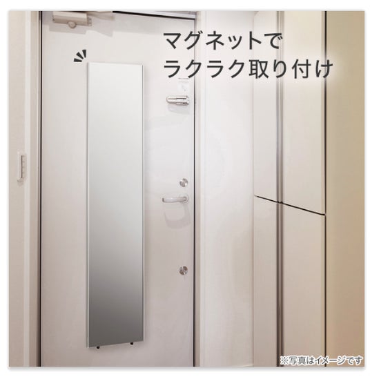 軽量な為、好きな場所に気軽に立掛けられます。さらにマグネットが付いているので、玄関の扉にも簡単に取り付けることができ、お出かけ前にサッと姿見として使える便利さが魅力です。