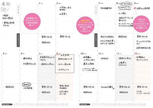 「叶えるアクション」が書き込めるウィークリーのTODOページ(Y-Style『ワーキングマザーの手帳2025』)