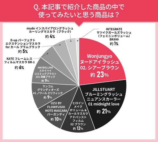 使ってみたい商品に関しても、ブラウンやバーガンディなどのニュアンスカラーが人気。ブラシ形状が工夫されている商品にも、塗やすさに関するコメントが目立ちました。また、落ちにくさとオフの簡単さを両立している商品も人気があるようです。