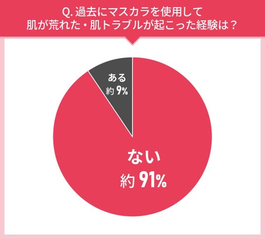 約91%の人が肌トラブルの経験はないと回答している一方で、約9%の人があると回答しました。割合としては少ないものの、合わないマスカラを使うと肌トラブルが起こる場合があるということですね。