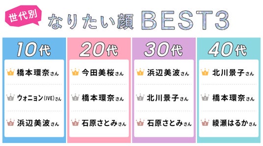 「今、なりたい顔」TOP3を世代別にピックアップ。