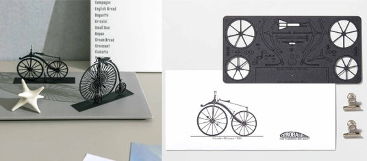 奥深い「模型」の世界を初めてでも堪能できる、小さな自転車模型キットです。プラスティックに似た硬さの紙にレーザーカットされたパーツを、カッターナイフ、ピンセット、紙用のりで組み立てます。モデルキットデザイナー・岩見慎一さんが監修し、車輪やチェーンなど細部まで精密に設計されています。「自分に作れるかな?」というしり込みは無用です。「初めての子どもから大人まで、模型づくりの楽しさにぜひふれてほしい」と岩見さん。