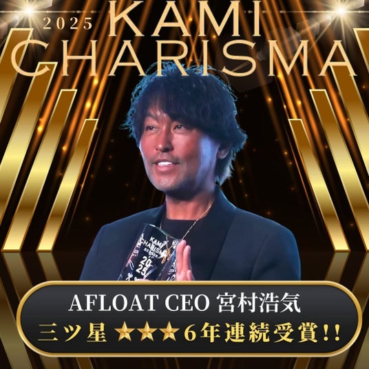 全国から流行を発信し続け、全ての女性を可愛くする世界一のカリスマ美容師集団 AFLOAT (アフロート)を運営する株式会社エターナル(本社所在地:東京都港区)の代表取締役 宮村 浩気がこの度、KAMI CHARISMA 2025アワードにて世界に誇る日本の美容師として5年連続三ツ星を受賞いたしました。