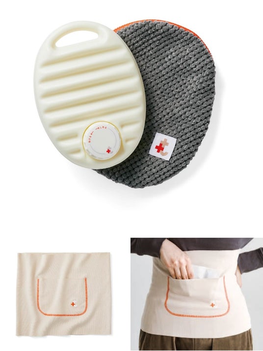 (写真上)湯たんぽ&湯たんぽカバー(写真下)伸縮性のある薄手素材の腹巻き