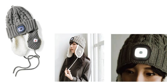 【ヘッドライト付きニットキャップ】服を着ていない頭は寒さに無防備です。締めつけ感のない耳ボア付きキャップをかぶって頭部全体をあたためましょう。額のLEDライトは停電時や夜間の移動に便利。予備の電池を用意しておくと安心です。内側ボアで らくちん。耳まであったか。耳を一緒にあたためれば、気持ちも落ちつきます。
