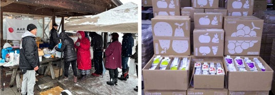 避難生活を送られている方に向けて「もしもしも防災基金」から支援物資として、防寒用のマフラーや靴下、体ふきウェットタオル、携帯トイレ、ドライシャンプーミトンやマウスウォッシュなどの衛生用品を提供、またフェリシモ財団を通じて栄養分と水分を補給できるゼリー1,920個を提供しました。これらの物資は、現地で活動する団体スタッフが石川県珠洲市や七尾市などの避難所を訪問して渡されました。また現地での炊き出しにて7万食超の提供や、断水により何週間も入浴できない要支援の高齢者の方々に入浴支援を実施しました。