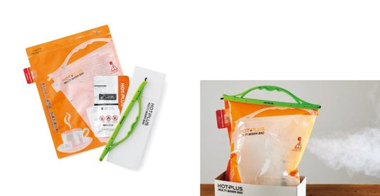 【マルチウォームバッグと発熱剤セット】少量の水と発熱剤だけで、湯沸かしや食材のあたためができるマルチパックです。発熱に使う水は雨水や川の水でもOKなので、貴重な水を無駄にしません。簡易的な給水袋として最大1.8リットルの水が入れられます。安全に使うための箱付きです。