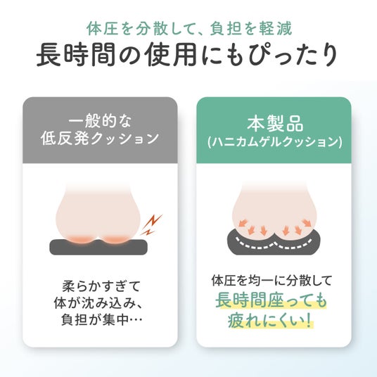 本製品は、クッションにハニカム構造のTPE製ゲルを内蔵しています。