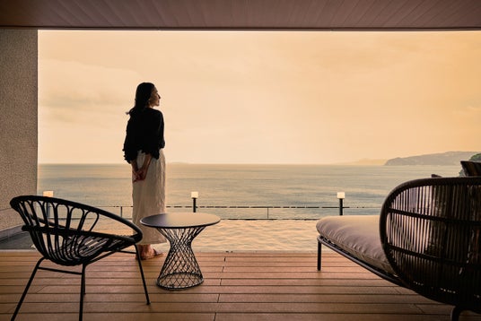 煌めきに満ちた海面と、空との境界を真一文字に引く水平線、そして大らかな景観を優雅に走る舟影。熱海・伊豆山 佳ら久では、美しい自然の造形が描きだす水天一碧の情景を堪能できます。旬の食材をふんだんに使ったお料理、趣のことなる2つのラウンジ、ジムやスパなど、記憶に深く刻み込まれる旅を提供します。麗らかな活力が生まれるその時を熱海・伊豆山 佳ら久でご満喫ください。