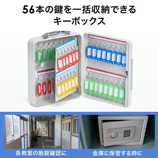 大容量鍵ボックス キーボックス キーケース 取っ手付き 大容量 壁掛け対応可能 鍵付き 56本収納可能