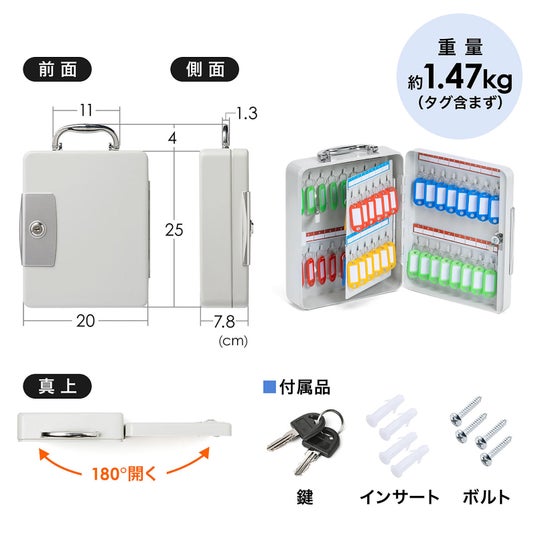 ・大容量設計:多くの鍵を一括収納可能で管理が簡単。