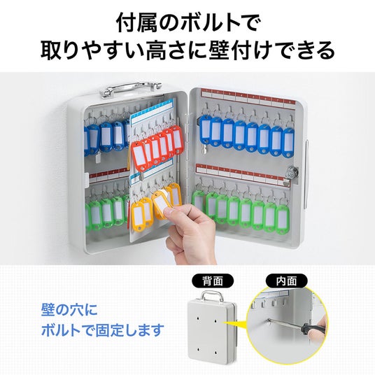 サンワサプライ株式会社持ち運びや壁掛けが可能な利便性と、鍵付き扉による高いセキュリティを備えた鍵を収納することができる大容量鍵ボックス