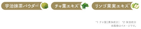 宇治抹茶パウダー*1が微粒子汚れをオフ。チャ葉エキス*2、リンゴ果実エキス*2が肌にうるおいを与え、毛穴が目立ちやすい季節の変わり目の肌も陶器のようなつるつる肌に。