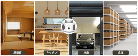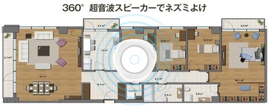 従来品の2倍以上の有効範囲を実現!360度放射型スピーカーが約350平方メートル (約230畳)をくまなくカバー。9連フラッシュライトが視覚的威嚇をプラス。キッチンや倉庫、ペットスペースなど、あらゆるエリアに最適です。※効果を最大限引き出すため、開放空間での単体設置がおすすめ。