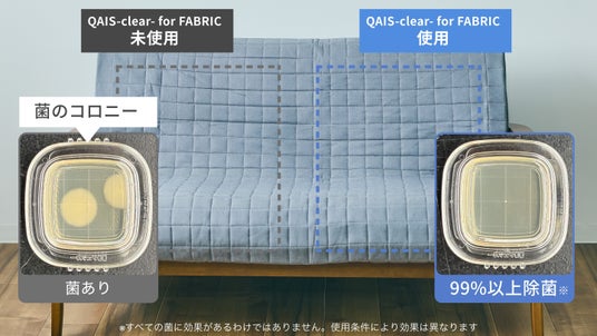QAISは、これまで、ペットがいるご家庭へ健やかな室内空気環境を提供するため、ペットの「トイレ臭のお悩み」に着目した除菌脱臭機やペット用品などを除菌消臭するスプレーなどの製品を販売してきました。この度、以前よりお声をいただいていた、「ソファやベッドのニオイも対策したい」「カーペットの抜け毛の掃除を簡単にしたい」といったペットオーナーのご要望にお応えし、ペットのお気に入りの場所となるソファやペット用クッション/カーペット、衣類などの布製品に付着したニオイや抜け毛のお悩みに着目した1本4役の除菌・消臭スプレー「QAIS-clear- for FABRIC」を開発しました。