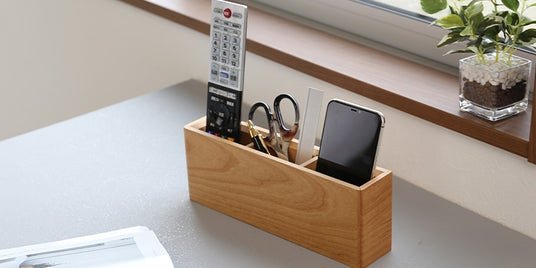 「リモコンをテーブルの上に置いたままにしておくのを改善したく、何かいい物がないか探していたら、こちらの商品を見つけました。色が他の家具とバッチリ合っていて、とても素敵な収納になりお気に入りの空間となりました。」