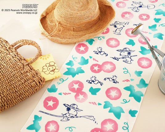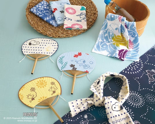 シリーズ第7弾となる今回のテーマは「夏めぐり」。夏の風物詩をモチーフにした特別な手ぬぐいコレクションが登場登場します。朝顔の栽培に励むスヌーピーや、金魚と涼しげに泳ぐ姿、縁日でヨーヨーの上にちょこんと座る愛らしい姿など、夏の情景がぎゅっと詰まった全8種類のラインナップ。日本の夏を感じるクラシックなデザインと、夏らしい鮮やかなカラーリングが暑い季節に心地よい涼を運びます。