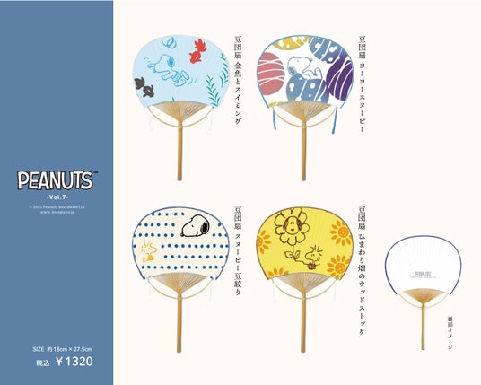 夏にぴったりな、手ぬぐい生地を使用したコンパクトな豆団扇も登場!金魚とスイミング、ヨーヨースヌーピー、スヌーピー豆絞り、ひまわり畑のウッドストックの全4種類、コンパクトながらも、しっかり風を送る実用性と、愛らしいデザインが魅力です。手ぬぐいと組み合わせて、夏の装いにアクセントをプラスしてお楽しみください。
