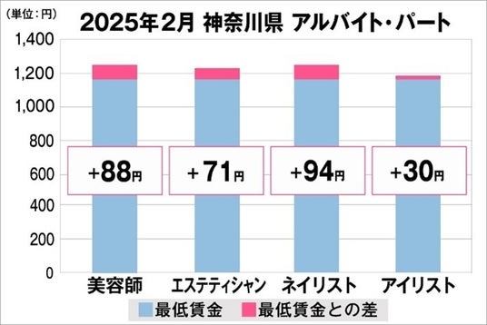 神奈川県の美容業界における採用時給料に関する調査結果(アルバイト・パート)2025年2月美プロ調べ
