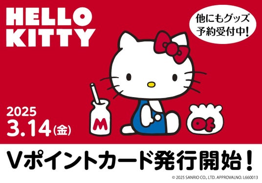 ハローキティ誕生当時の70年代を彷彿とさせる赤を基調としたレトロなデザインのVポイントカードとオリジナルグッズが登場!