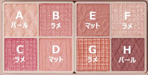異なる色・質感で自分好みのアイメイクが楽しめる8色をセット(ハート)