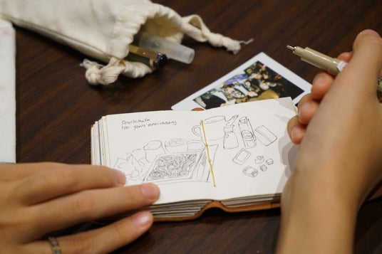 体験したことやその時の気持ちを記録しておく「ジャーナリング」を、Artlineシリーズの筆記具やallemoreシリーズのスタンプ、「いろもよう」などのデコレーションアイテムを使用して気軽に体験できる企画。クアラルンプール現地の文具販売サイト「Sumthings of Mine」が扱う手帳に、元年堂で味わった蕎麦のイラストや今の気持ちを自由に書き込むことができます。アーティストやインフルエンサーが制作したジャーナリングの展示も行っています。