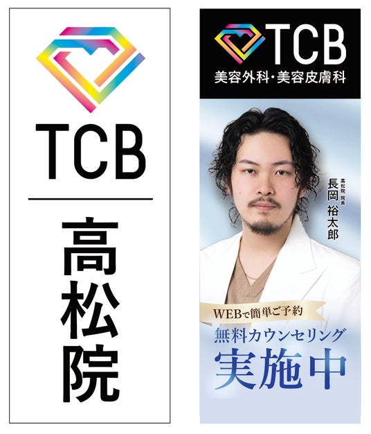 ドア横部分にはTCB高松院院長 長岡裕太郎医師を掲載し、「美容の専門家」として地元住民の方々に信頼感と親しみやすさを感じていただけることを願ってデザインいたしました。