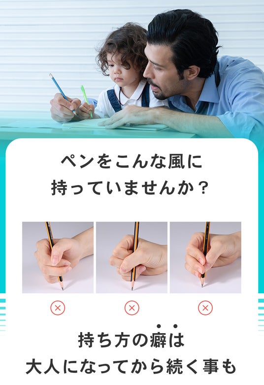 しかも昨今はPC、タブレットの登場で手で書くという機会が減っているのもあり、正しく持てないという問題は子供に限らす大人にも反映されています。