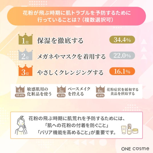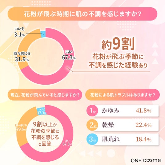 美容コスメ領域を中心に、さまざまな領域特化型メディアプラットフォームを展開する株式会社FoR(本社:東京都渋谷区、代表取締役CEO:高橋知暉)が運営する、゛自分をもっと好き になるコスメスキンケアプラットフォーム“『ONEcosme』が、20代以上の女性98名を対象に「花粉時期の肌トラブル」について調査しました。