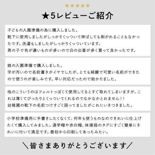 さらに、楽天市場のレビューも150件を超え、多くのお客様から高評価をいただいております。特に★5評価が多数寄せられており、「手軽に名前付けができる」「しっかり貼れて剥がれにくい」といった喜びの声が続々と届いています。