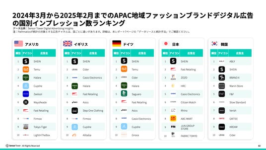 SHEINが多くの国のAPAC地域ファッションブランド広告インプレッション数で上位に