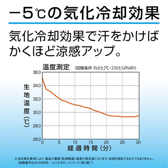 -5°の気化冷却効果で汗をかけばかくほど涼感アップ。プールや海、アウトドアでもしっかり紫外線ケア。劣化しにくい塩素対応糸を採用。