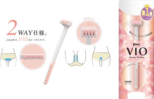 カミソリです。2WAY仕様で、Vゾーン・Iゾーン・Oゾーンそれぞれの毛量を調整しやすいデザインになっており、毛量をコントロールすることで生理時のムレやニオイなどの不快感を軽減します。