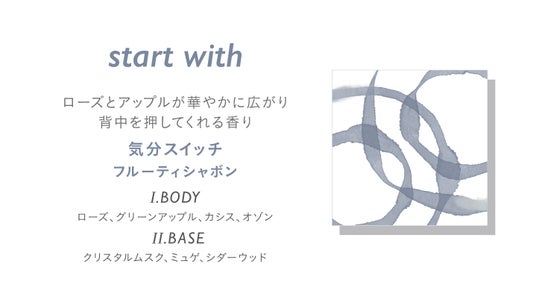 start with:ローズとアップルが華やかに広がり背中を押してくれる香り