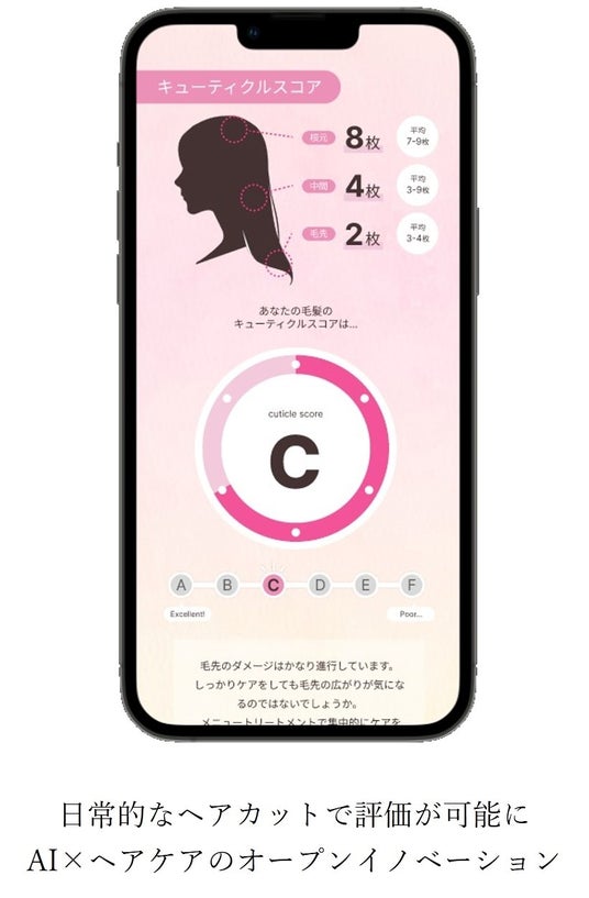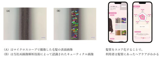 一般的には毛髪の断面観察が必要だったキューティクルの重なり枚数を、毛髪表面から正確に推定可能にし、髪質をスコア化。一人ひとりの毛髪の状態に応じた適切なヘアケアの提供が可能