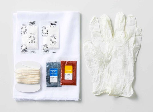 古くから日本の暮らしに深くなじんできた手染めの技法を気軽に体験できるキットです。監修は東京・日本橋にある1890年創業の老舗「みやこ染」。キットは〈朝顔〉、〈万華鏡〉、〈ひこうき雲〉、〈ちょうちょ〉、〈星〉、〈ぼたん〉の6種類です。1回に基本のブルー系とアレンジ用の2色の染料が付いていて、輪ゴムや洗濯ばさみといった身近なものを活用して自由に表現できるのも魅力のひとつです。完成した手ぬぐいは、食器ふき、ハンカチ、インテリアなど幅広く使えます。