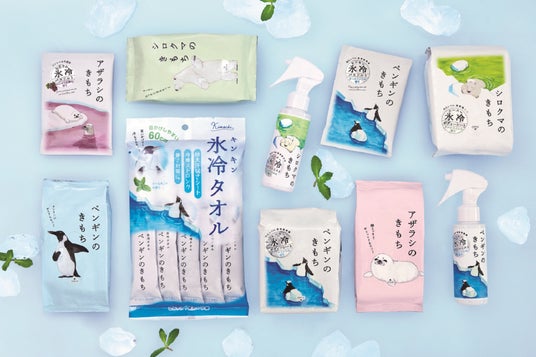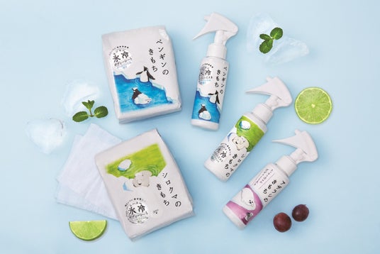 今年は個包装が便利なキンキン冷える超大判汗拭きタオル「氷冷タオル」が新登場。メントール不使用でやさしく涼む「アザラシのきもち」に「涼感ボディーミスト」と「涼感フェイスシート」も加わり、思わず "冷えきもちぃ~"と声に出る楽しいクールアイテムがさらに充実!