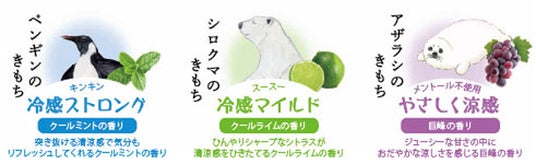 ペンギン・シロクマ清涼成分:メントール、アザラシ清涼成分:ユーカリ油、クスノキ樹皮油