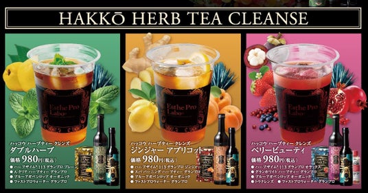 オリジナルドリンクメニューとして、プロテインソイラテ4種とハッコウハーブティークレンズ3種を提供いたします。エステプロ・ラボブランドの酵素ドリンク「ハーブザイム(R) 113 グランプロ」や高付加価値水「ファストプロウォーター」も使用しているスペシャルドリンクをお楽しみください。