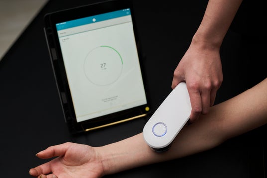 老化物質である終末糖化産物(AGEs)を測定し、「糖化年齢」を判定します。実年齢と比較し体内での老化進行の度合いが分かるため、年齢に応じたケアの手掛かりとしてご活用いただけます。