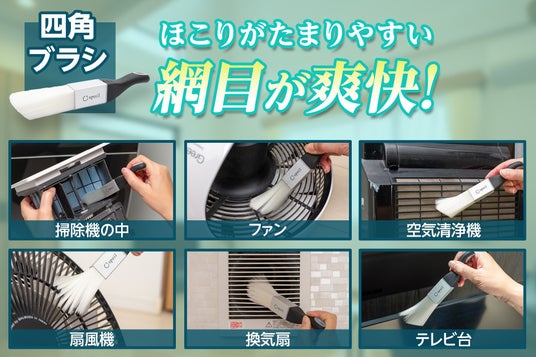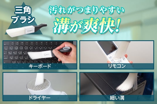 「すきま爽快mini」は「四角ブラシ」と「三角ブラシ」の2本セットで販売します。断面の形が異なっており、ほこりがたまりやすい網目には「四角ブラシ」、汚れが詰まりやすい溝には「三角ブラシ」と用途に合わせて使い分けていただけます。