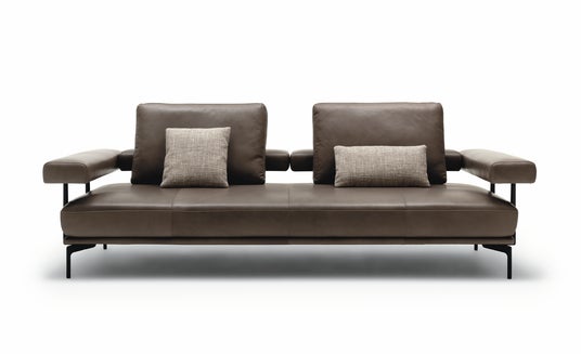 フランスのデザイナー、Toan Nguyen(トアン・グエン)とロルフベンツの最新コラボレーションから誕生した「JAZ」。自由な空間が生み出す軽やかさを追求し、開放感あふれるモダンなリビングスタイルを表現しました。シャープな印象を与えるアルミニウム製フレームに支えられたシートクッションと、背もたれとの間に設けられたゆとりが、視覚的な軽やかさと空間の広がりを演出します。さらに、バックレストとアーム部分はそれぞれ10cm拡張することが可能。奥行きのある座面が生まれることで、より深くくつろげる快適性が得られます。