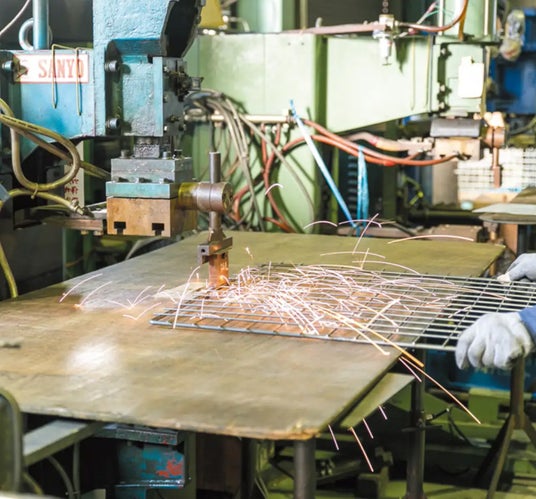 溶接・組み立て工程では、スポット溶接機をはじめ、CO2・アルゴン溶接機を導入し、多様な溶接要求に対応しています。最終工程では、各部材の接着状況を確認し、製品の歪みやよじれがないか、熟練の技術者による丁寧な検品が行われます。