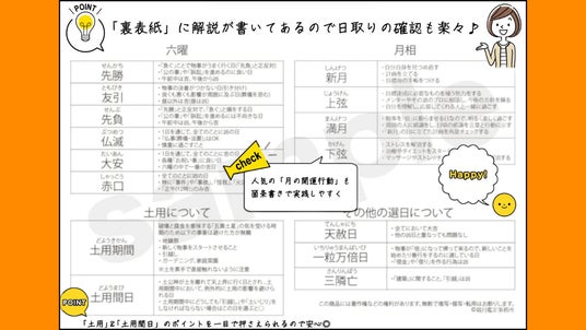 そんな疑問も、裏表紙にある解説を見れば一目瞭然。暦の『意味』や『活かし方』がわかります!