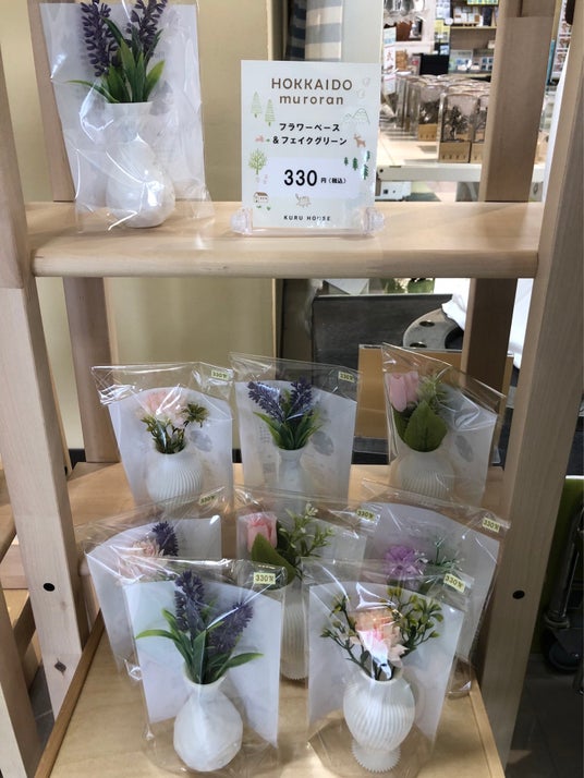 🟣 フラワーベース&フェイクグリーン(各330円)