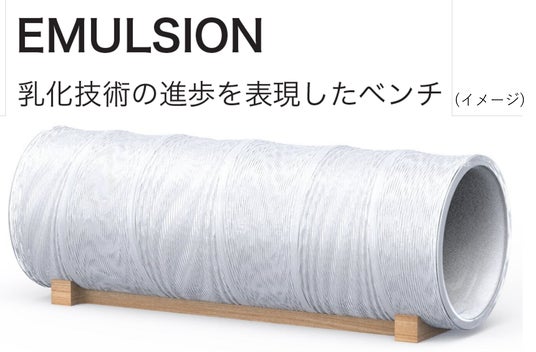 化粧品では、乳化(EMULSION)という技術を用いて、「しっとりしているのにべたつかないクリーム」のような、水だけ・油だけでは実現できない豊かな感触を実現しています。ポーラ化成工業が開発したオリジナル乳化物の様子をベンチに模し、身近に使うものの手触りの裏にある技術の奥深さを表現しました。